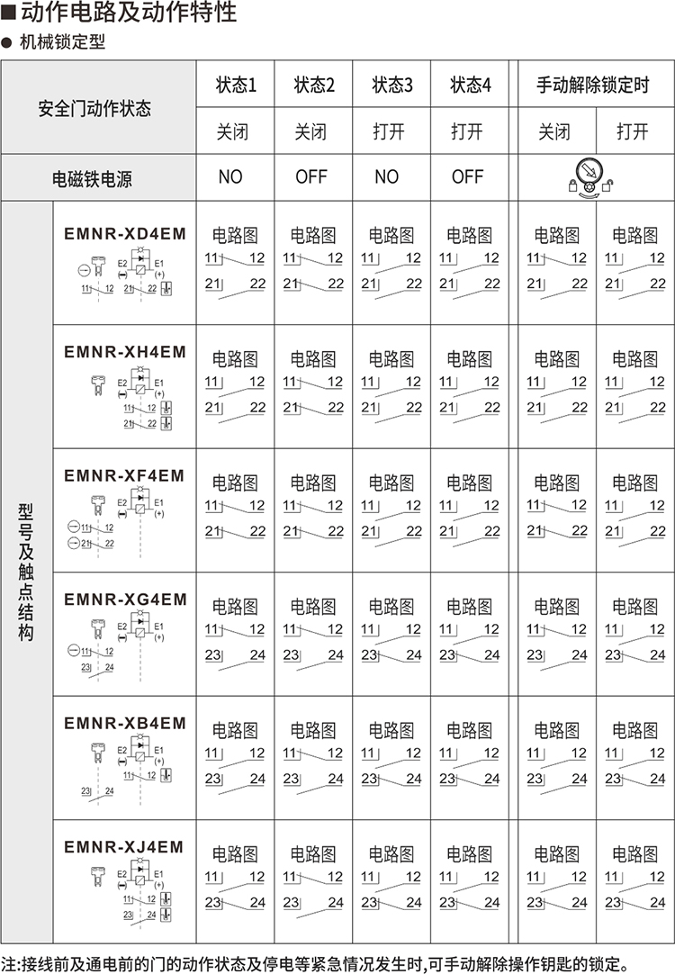 在安全門鎖選型時,我們首先需要了解到安全門鎖可以提供的功能是通過電磁鎖和鑰匙控制觸點通斷,然后我們規(guī)劃出,需要插鑰匙時觸點的狀態(tài)需要是導通還是斷開,門鎖上電或斷電時觸點的狀態(tài)又是怎樣的需求。