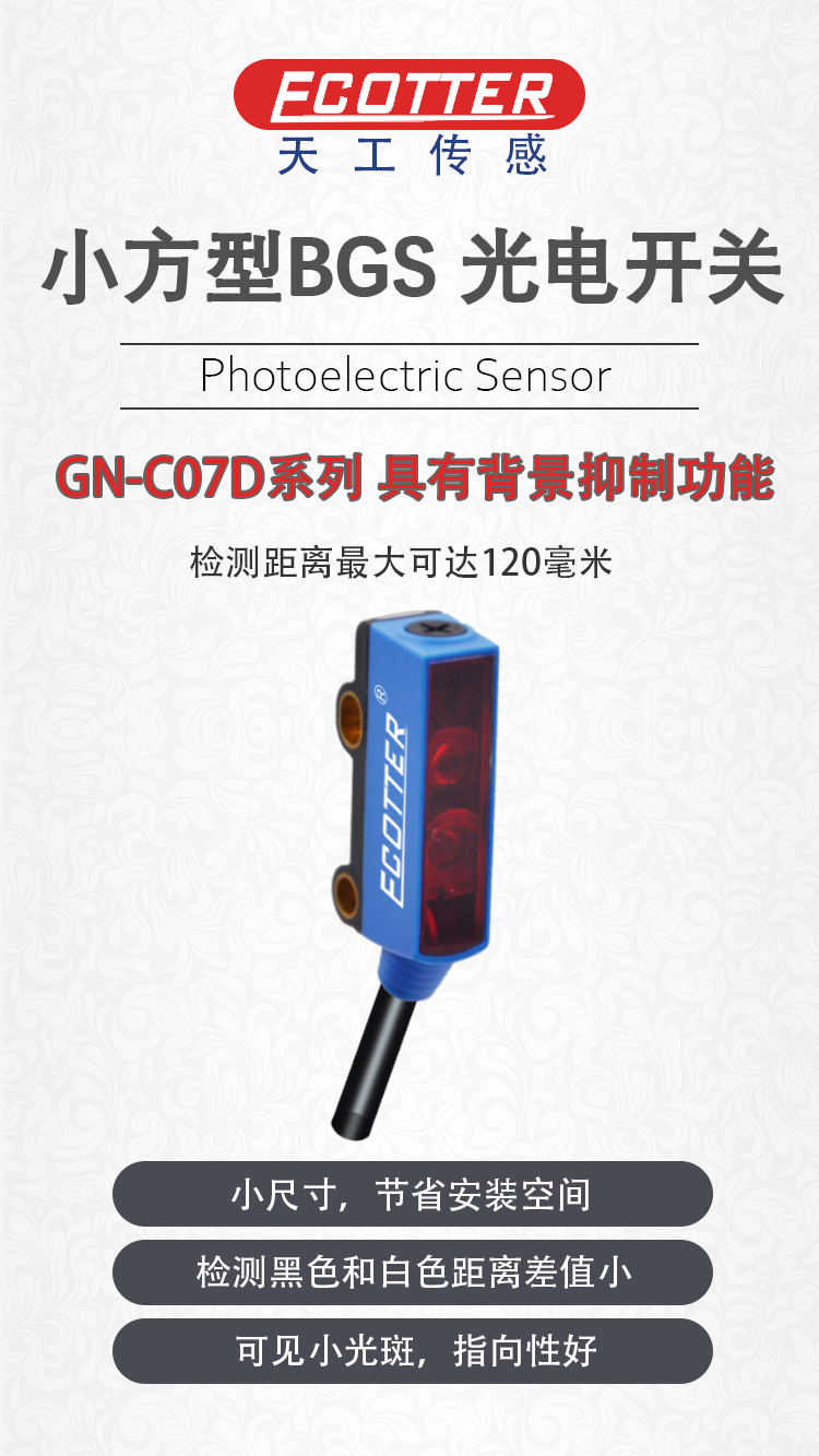 ECOTTER 小方型光電開(kāi)關(guān)GN-C07系列是具有背景抑制功能的光電開(kāi)關(guān)中尺寸最小的款式,它秉承光電開(kāi)關(guān)的優(yōu)良特性檢測(cè)距離遠(yuǎn),檢測(cè)白色距離達(dá)到1~120毫米,檢測(cè)黑色距離5~110毫米,黑白差值小。產(chǎn)品機(jī)身厚度7.7毫米節(jié)省安裝空間,反應(yīng)速度快,有效保證了應(yīng)用中不會(huì)出現(xiàn)過(guò)多的反應(yīng)延遲。上電時(shí)發(fā)出紅光,可清楚看到感應(yīng)的位置,方便調(diào)整檢測(cè)范圍。