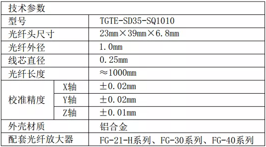 這款光纖是由2組纖芯直徑為Φ0.25mm的光纖線組成,需要使用2個光纖放大器配合工作。最小可以定位直徑Φ0.25mm的物體。