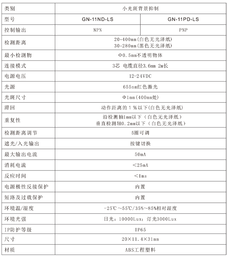 首頁 > 產(chǎn)品中心 >>傳 感 器 >> 光電開關(guān) >> 背景抑制激光光電開關(guān)GN-11-LS