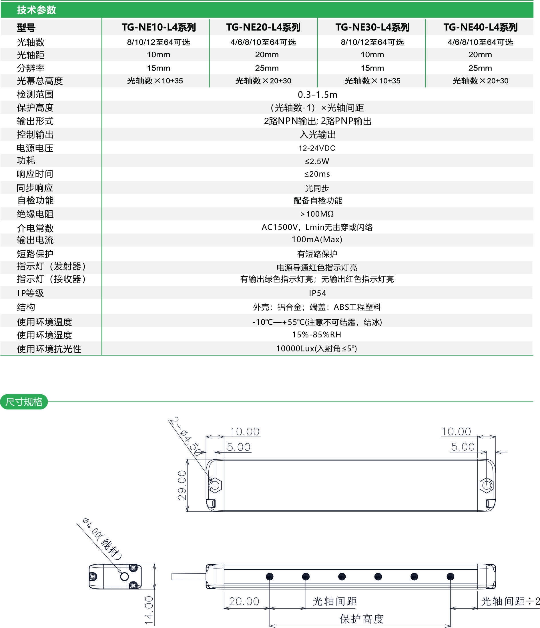 四級安全光幕超薄型TG-NE-L4側(cè)面對射