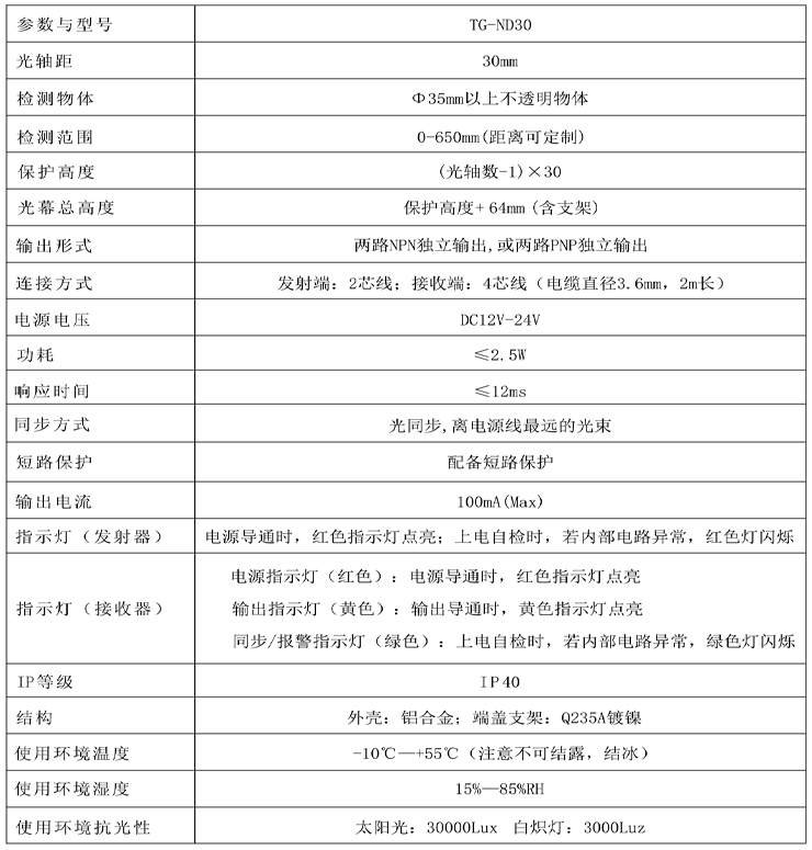 首頁 > 產(chǎn)品中心 >>傳 感 器 >> 安全光幕 >> 四級安全光幕超薄型TG-ND-30系列