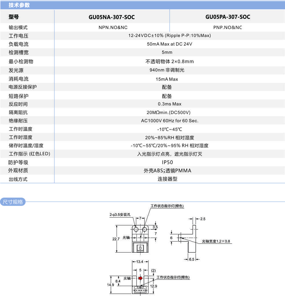 槽型光電開關(guān)GU05-307-SOC